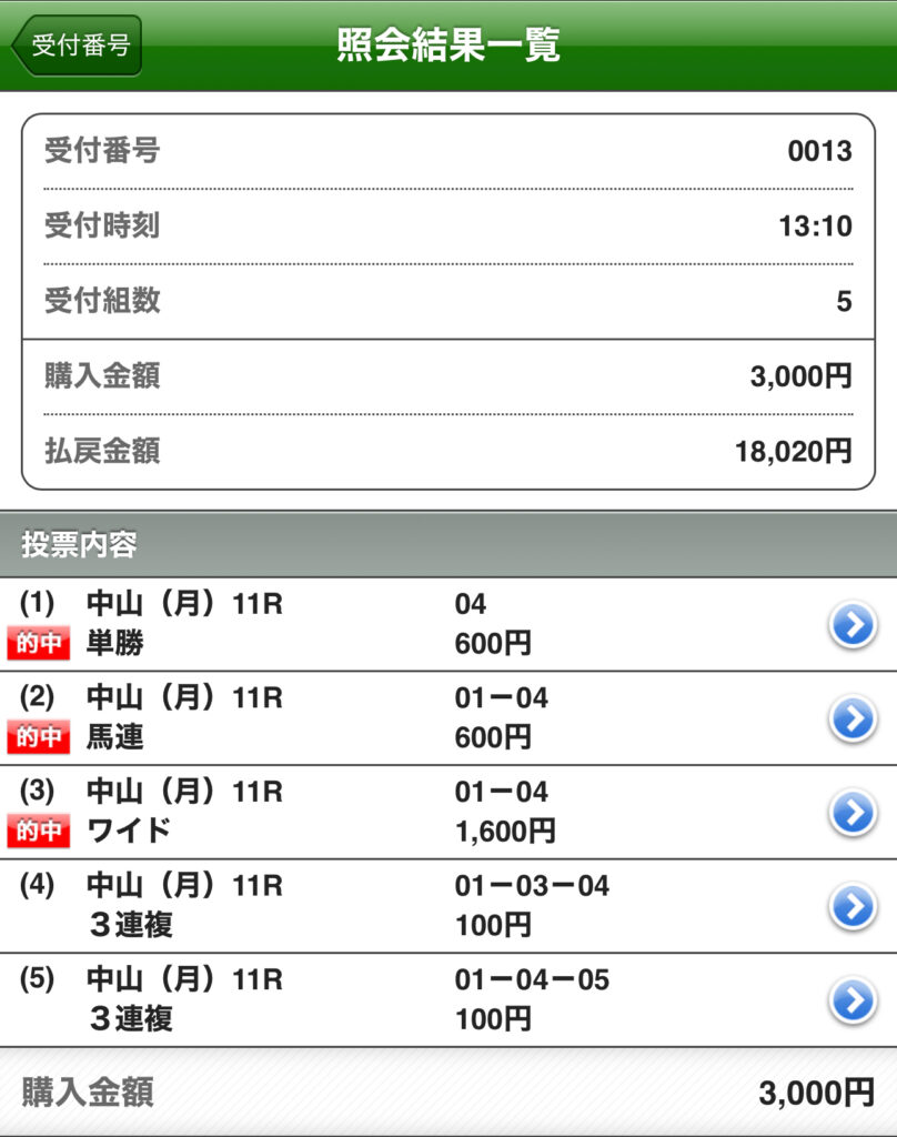 当てにいってしまい、ワイドを厚めに買ってしまった点は反省。こういう場面で強気に張れるようになりたいところです。